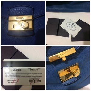 Prada Authentic Satchel Bag Pebbled Leather Blue