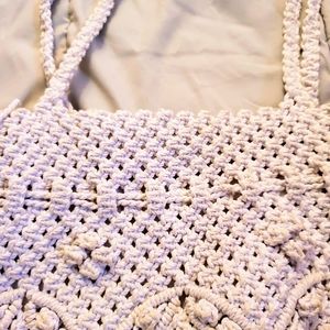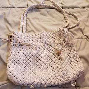 Boho style white crochet shoulder bag. Very cute. Snap closure as well as pull style closure. Great condition. Unbranded.