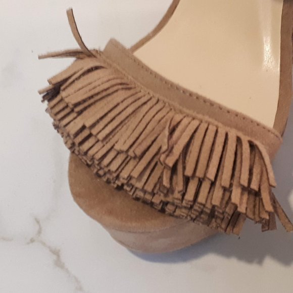 EUC Qupid nude suede strappy wedge platform sandal, 6