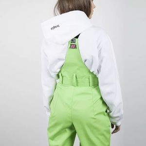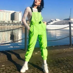 Neon green cargo jumpsuit chain buckle