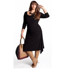This dress is a sleek & flattering fit. Wear it to work, on a date, or to a cocktail hour with some pretty jewelry & calf length boots.