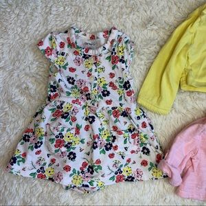 Floral onesie dress with 2 matching lightweight sweaters. Perfect summer outfit. Excellent used condition. Pet free/ smoke free home.