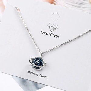 *NEW 925 Sterling Silver Druzy Planet Necklace
