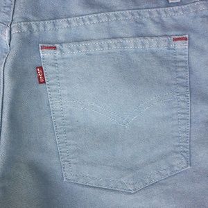 High rise super cool vintage Levi’s shorts. Blue twill-like material with red threading accents! Excellent condition and from smoke free home.