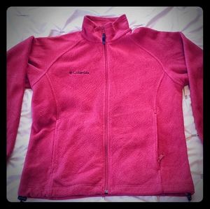 Red columbia sweater fleece zip up, worn but still in good condition and lots of life left.