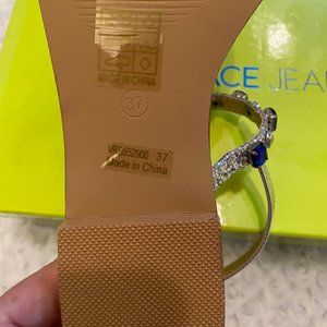 Versace Jeans Ladies Blue Glitter Mirror Flat Sandals-37