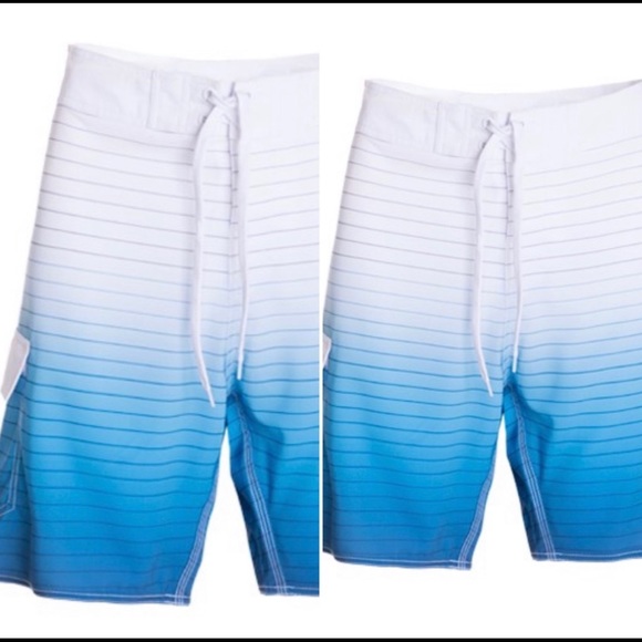 New with tags men’s blue ombré board shorts. Great brilliant color blue to white. Features single pocket with Velcro closure, four way stretch, adjustable drawstring,. Fabric content 92% polyester 8% spandex