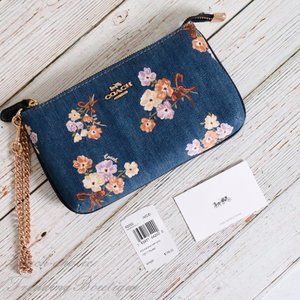 NWT Coach 92050 Large Wristlet with Painted Floral Box Print in Denim