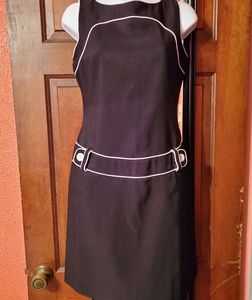 Giorgio Fiorlins black sleeveless dress with white trim and front belt