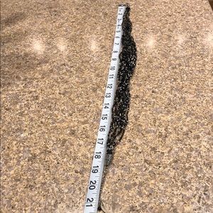 Fun and Fancy Coldwater Creek Black & Silver Colored Necklace. This has been worn and loved and shows signs of wear but it’s still a pretty necklace. The clasp is a darker silver with blackened color included with a worn look and feel. The beads are black and either clear or silver ( I think they might be clear but possibly over a silver colored strand?) There are more strands in the middle. Very fancy with a black dress!Measurements are approximate and colors may be off because of lighting.