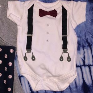 Little gentleman onesie with suspenders graphic printed and a little bow tie, by little treasure 0-3m