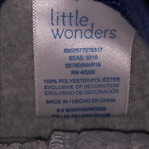 The 100% polyester footie is by little wonders 0-3m