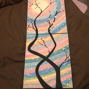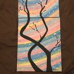 Handpainted by me; cherry blossom tree, with colorful background!! Very beautiful piece of art!!