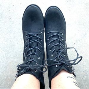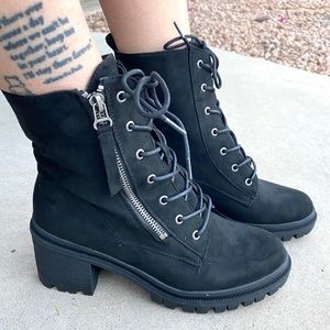 Brand new black vegan suede lace zip up Moto boots. These are so awesome and come brand new with box! True to size.