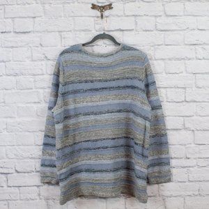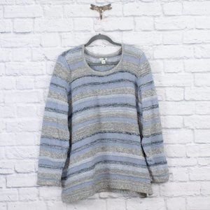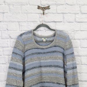 LL BEAN Rolled Hem Striped Cotton Knit Sweater 3X