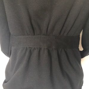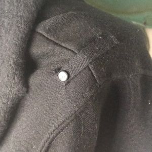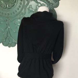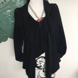 Pretty drapey collar detail, unlined and lightweight yet has a cozy feel. The shoulders have a pretty rhinestone added. The back is nippeoin at the waist to give it a flattering fit. Worn once.