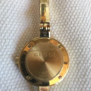Gucci Limited Edition Gold tone watch. Comes with box, case and care card. The face is gold tone globe. See photos for details.