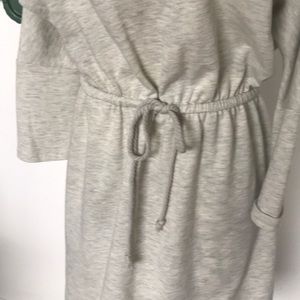 Cute & casual knit light grey dress with tie belt. Rolled hem on the skirt.