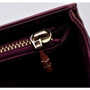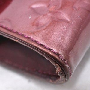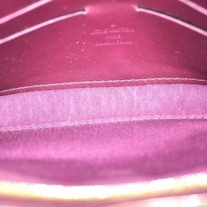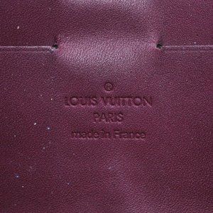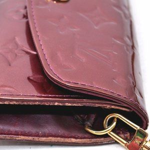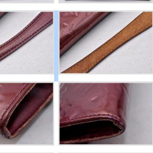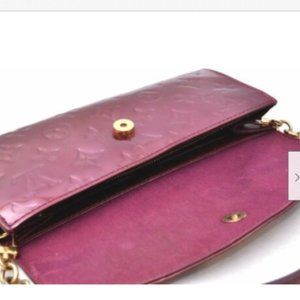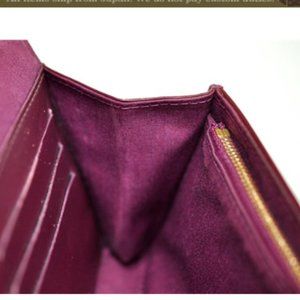 this is an authentic LOUIS VUITTON Vernis Sunset Boulevard Amarante This baguette is crafted of monogram embossed vernis patent leather in the beautiful deep purple color of amarante. The clutch has an envelope shape with a frontal rounded flap and a brass Louis Vuitton signature plate. The interior is textile and leather with six card slots. This is a marvelous baguette ideal for day or evening