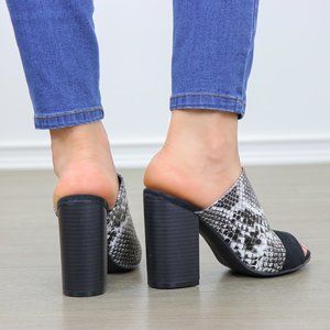Snake Print Open Toe Slip on Chunky High Heel