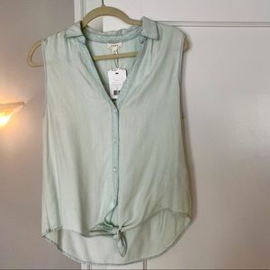 Beautiful sleeveless Soft Joie chambray shirt. Shirt is extremely flattering, has silky feel. Great for summer! Beautiful with white jeans. Shirt is in perfect condition. Brand new with tags.