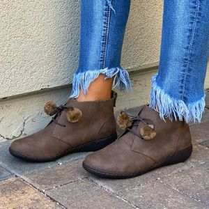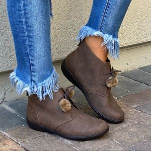 Texas Brown Memory Foam Pom Pom Oxford Bootie