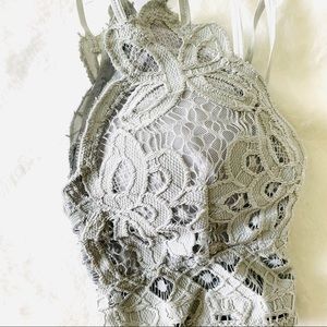 Beautiful crochet lace bralette, pullover style, long line, all-day comfort, v neckline, removable bra pads, criss-cross straps at the back, adjustable bra straps, and perfect amount of stretch. Color may vary due to lighting, comes from a smoke and pet free home.