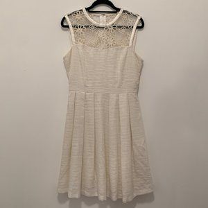So sweet. ModCloth Perfect for a wedding, baptism, baby shower, work! It’s a go to classic! Crochet and mesh yoke and zipper and hook and eye keyhole closure in the back. Pleated skirt. Sleeveless. Fully lined.