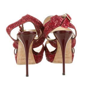 ๐ JIMMY CHOO Strappy Red Glitter Sandals Heels