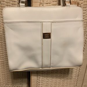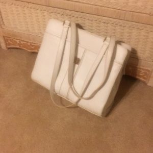 White Polyvinyl Shell; Looks & feels like Leather w Gold-tone hardware.