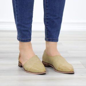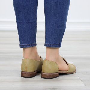 Beige Opened Side Pointy Slip On Flat Loafer