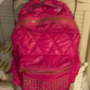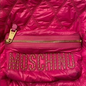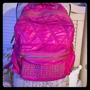 Puffy Moschino diamond stitched back pack with embellished lettering on front pocket and black inside. Two zippered pocket/opening outside and a small zipper pocket inside. Super light weight and soft. Purchased at Nordstrom’s