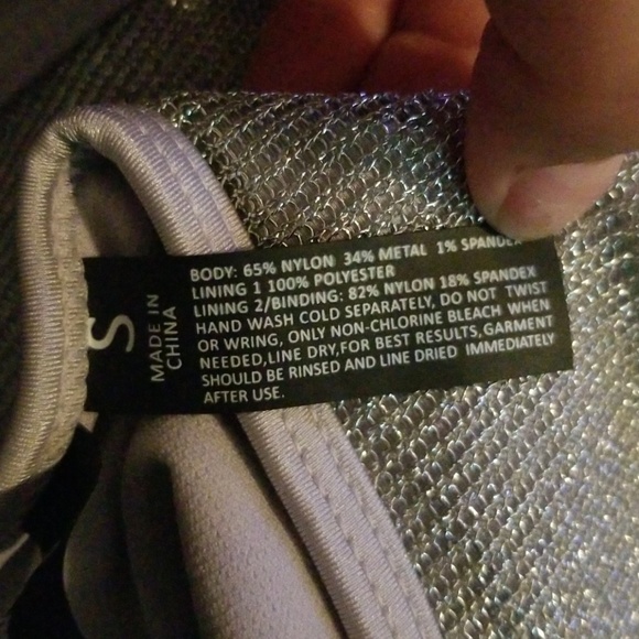 NWOT A metallic mesh knit construction brings some sparkle to your swimwear collection. Fit: this style fits true to size. - Halter self-tie straps - Metallic mesh knit - Solid color - Topstitching throughout - Fully lined -