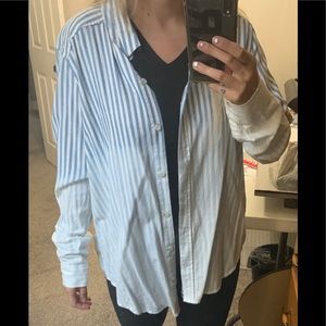 Women’s button up, Size Medium, Color White/Light Blue, Good condition, Non smoking house