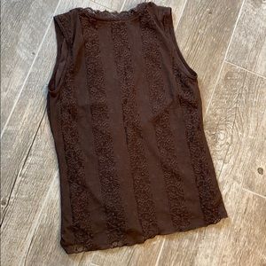 Pretty brown fully lined lace v- neck tank. Excellent condition. Smoke-free home. Approximate measurements:
