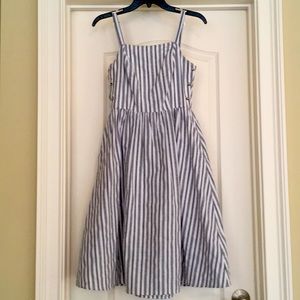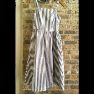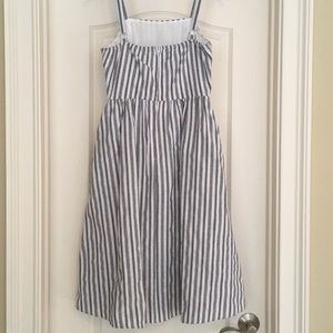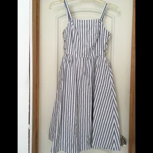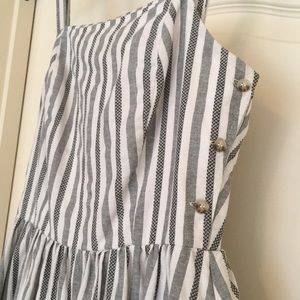 Preloved. Size XS. Adorable Navy and white midi sun dress. Has pockets! Fully adjustable straps. Wore once on a trip to Europe last year. Back zip closure. Side button details. Fully lined. Heavy material so it is ideal for a windy day. 😉 . In excellent condition.