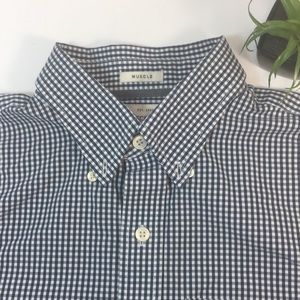 💙NEW💙 cute short-sleeve button-up muscle shirt, Plaid pattern, Excellent used condition, Like new, Size Small, 100% Cotton, Smoke/Pet Free Home. Thank you for your time.😉🤗🌹❤️