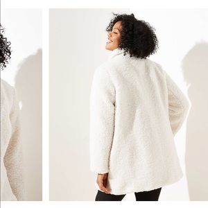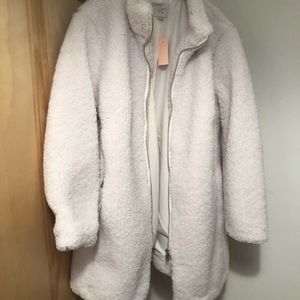 NWT LOFT funnel neck teddy bear jacket. Cream colored faux fur. Fully lined. Zippered up the front and the pockets.