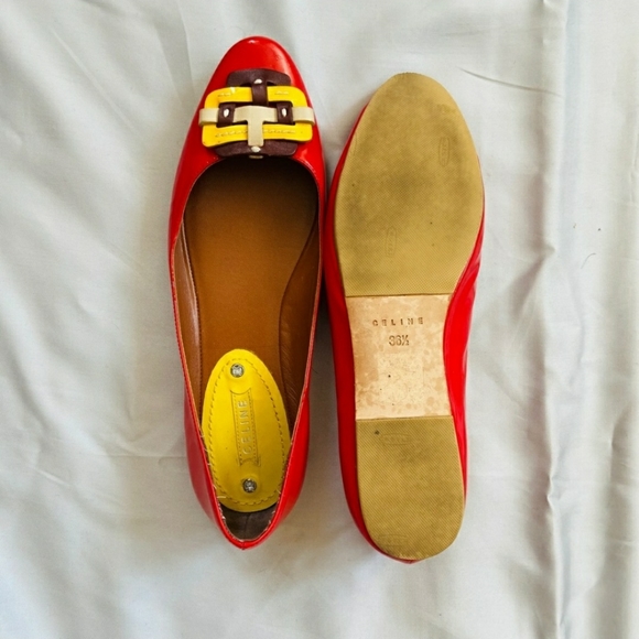 Almond toed patent leather with a beautiful contrasting pattern and reinforced base, so tons of life left in this luxury item.Ideal for that classic style Celine Lover👡