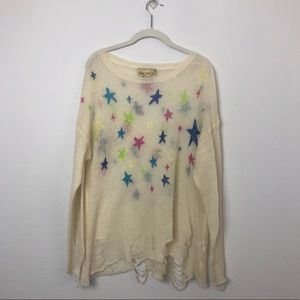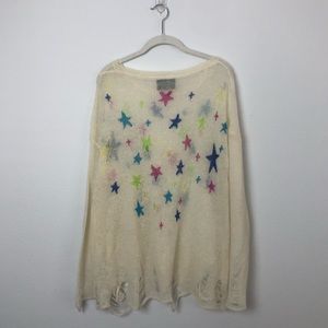 wildfox lennon star sweater, distressed sleeves and bottom