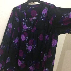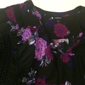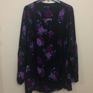 Torrid Boho Tunic Blouse Black / Plum Floral NWOT