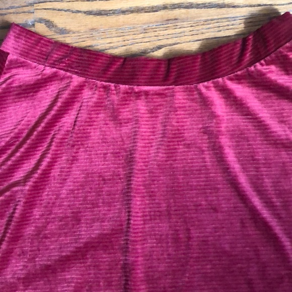 Very pretty, soft and silky corduroy skirt in a deep dark red. Last picture is truest color. Size XXL, waist is approximately 18’ laying flat and length is approximately 18’. Has some stretch but not much. NWT by SO