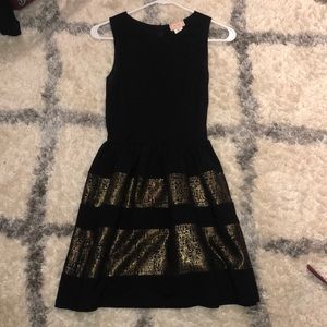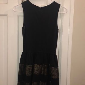 Very comfortable and flattering fit & flare dress. Materials: Rayon, Nylon, Spandex. Worn once! Material is pretty stretchy