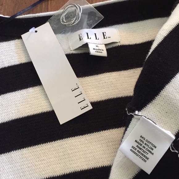 Elle🌹 Two-piece skirt and sweater jacket. Brand new with tags, gold tone zipper jacket. Jacket is $54 and skirt $44. This is a great deal for a brand new suit with tags attached. The size tag says extra large so please use the measurements to assure a perfect fit. Skirt has a 17 1/2 inch elastic waist, 18 1/2 inches long. Zipped and lying flat the sweater jacket is approximately 20 inches long from mid shoulder to bottom, Pitt to pit 21 inches. This set has stretch and give to it for a very comfortable and forgiving fit. Oh the compliments you will get!