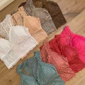 These are such beautiful lace bralettes. High quality, very soft sheen fabric. Longer body style, removable padding, non sheer and has a soft stretch throughout. True to size.