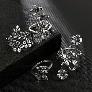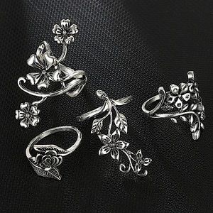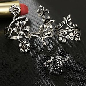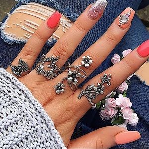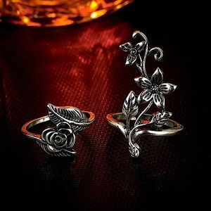 Silver flower vine knuckle ring set 🌺