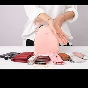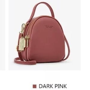 WOMENS CASUAL MINI DARK PINK/LOTUS COLOR BACKPACK. POLYURETHANE - PU LEATHER MINI SATCHEL BAG AND MINI BACKPACK ALSO FOR TEENAGE GIRLS. MULTI FUNCTION SMALL FEMALE LADIES BACKPACK.