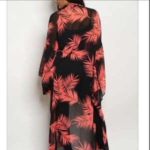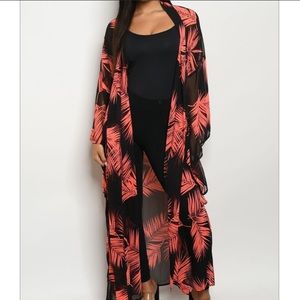 🆕NEW! LAST ONE! 🛍 Neon Coral and Black Luxe Kimono Duster