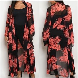 🆕LAST ONE! Neon Coral & Black Luxe Kimono Duster