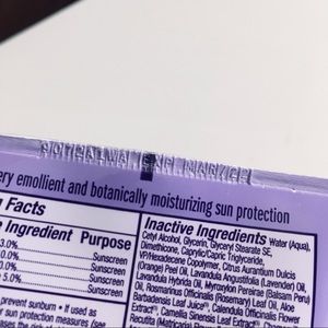 Broad spectrum SPF 45. Water resistant (80 mins.) Reef friendly. Biodegradable. No animal testing. No oxybenzone, or octinoxate. 100% natural fragrance. Lavender scented.